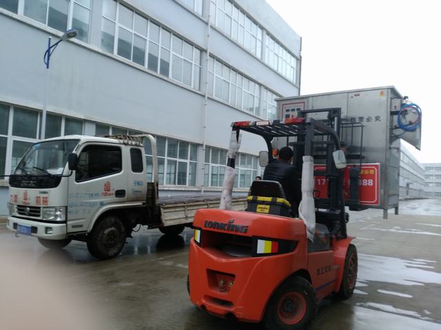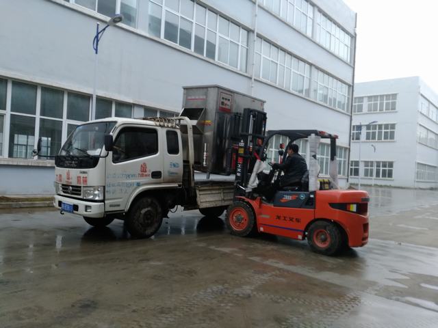 风雨无阻,发往山东枣庄的自动脱毛机装车实拍图片