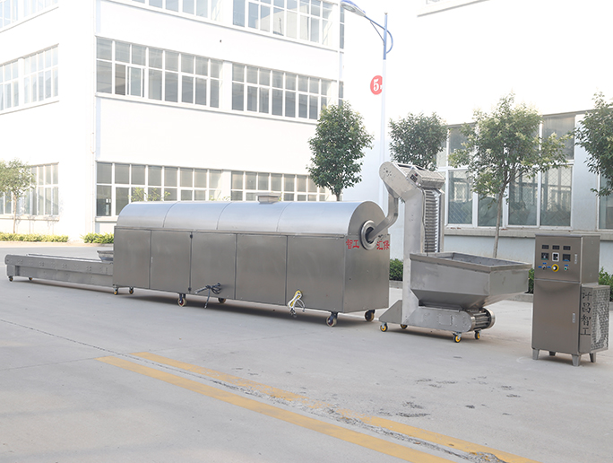 智工汇保提供2米至10米混炒流水线炒货机,搭配提升机、冷却床、振动筛打造自动化炒货作业流水线 省人工 高产量 低能耗,清洁生产,自动炒货